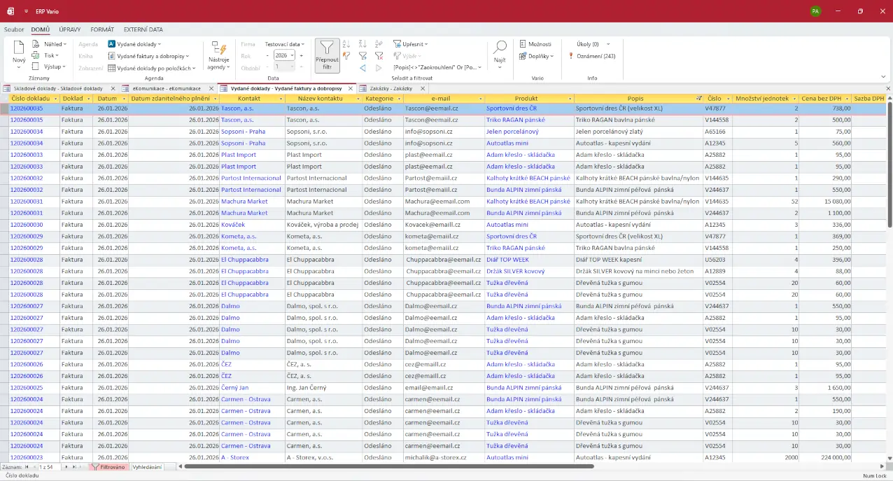 - odesílání dokladů e-mailem