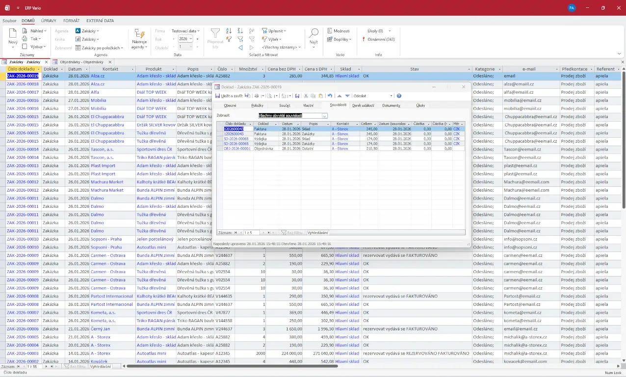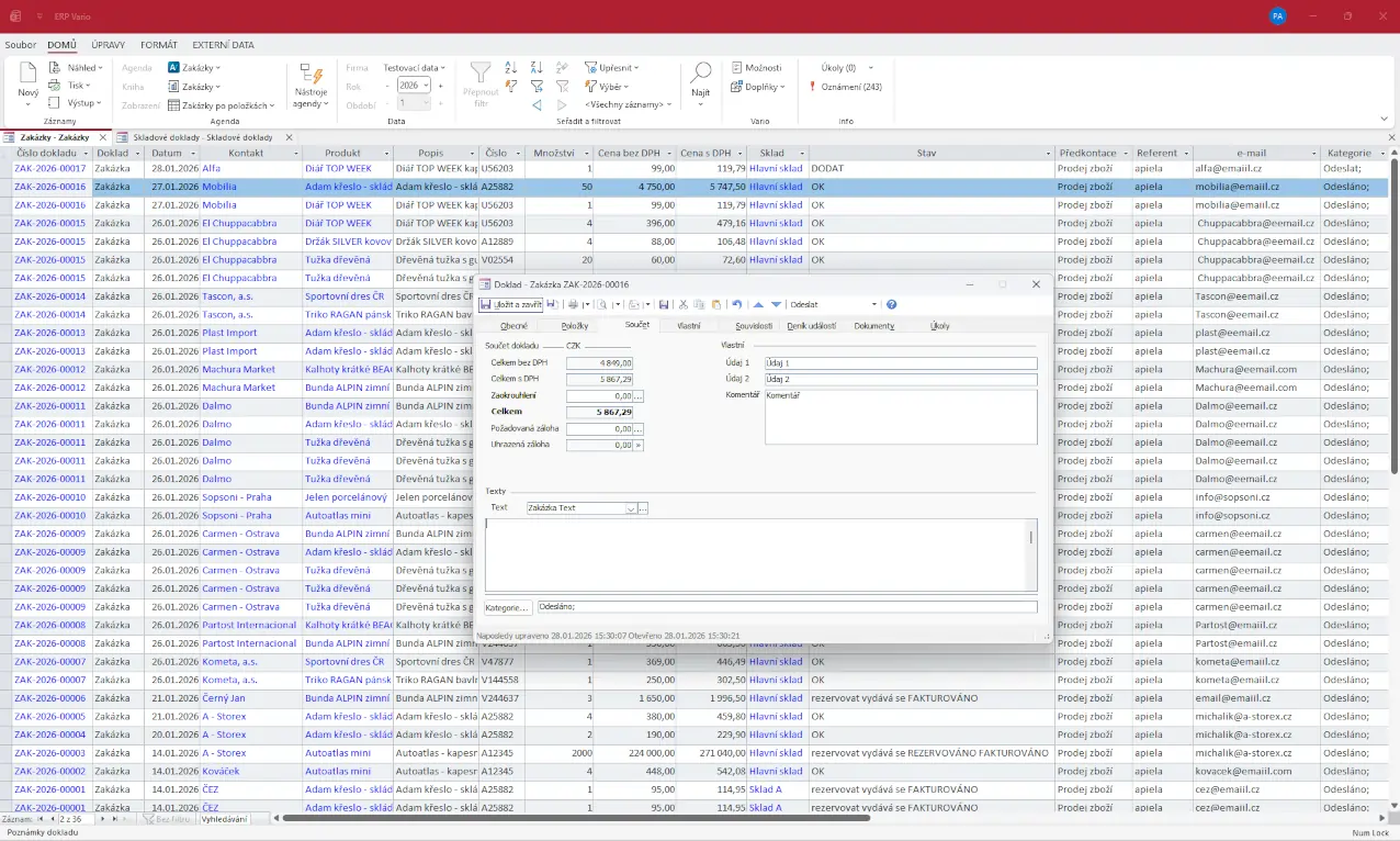 - automatické generování návazných dokladů