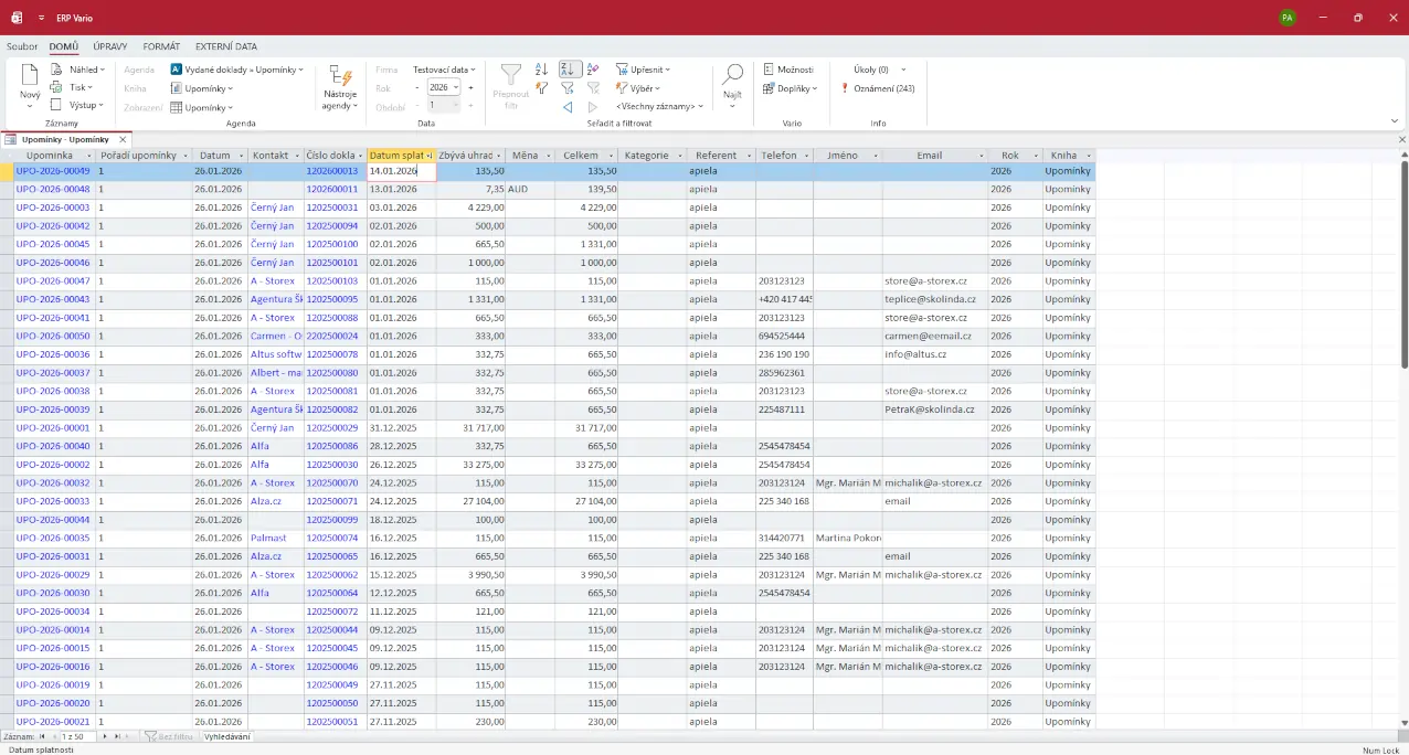 Hlídání splatností a upomínání