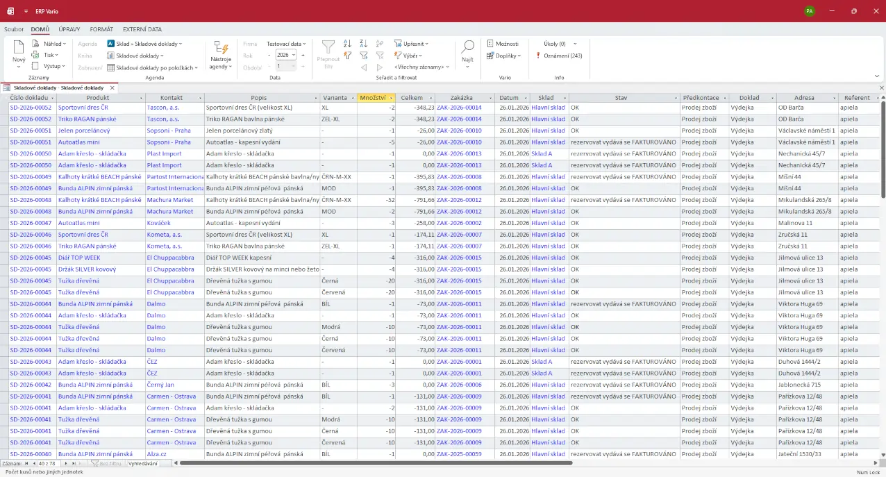 - informování o stavu skladových pohybů
