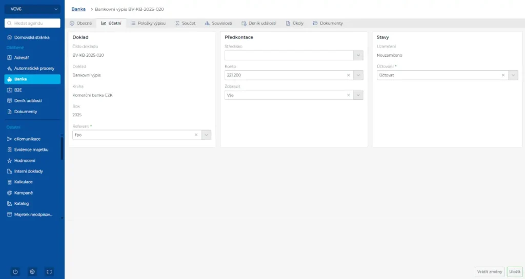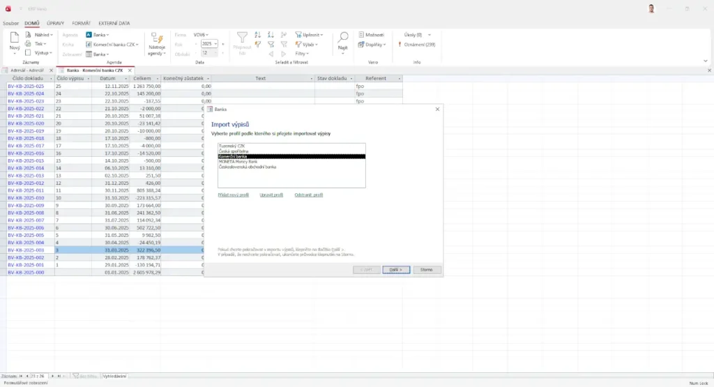 Ano, pokud vaše banka podporuje API komunikaci. V kombinaci s modulem Automatické procesy lze výpisy stahovat zcela automatizovaně. Pokud API není dostupné, můžete výpis kdykoli importovat ručně — systém jej zpracuje stejně spolehlivě.