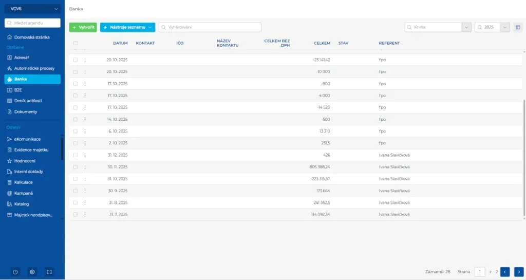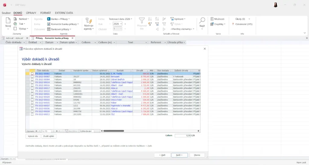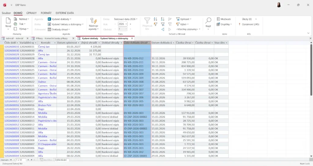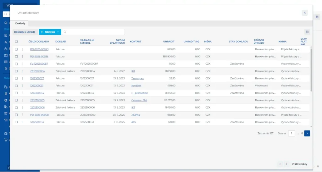 Automatická aktualizace salda a přesně evidované úhrady poskytují aktuální přehled o pohledávkách a závazcích. Uživatelé vidí, co je zaplacené a co čeká na úhradu. Tyto informace jsou klíčové pro plánování a kontrolu finanční stability firmy.