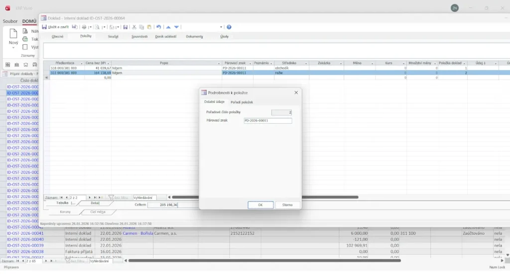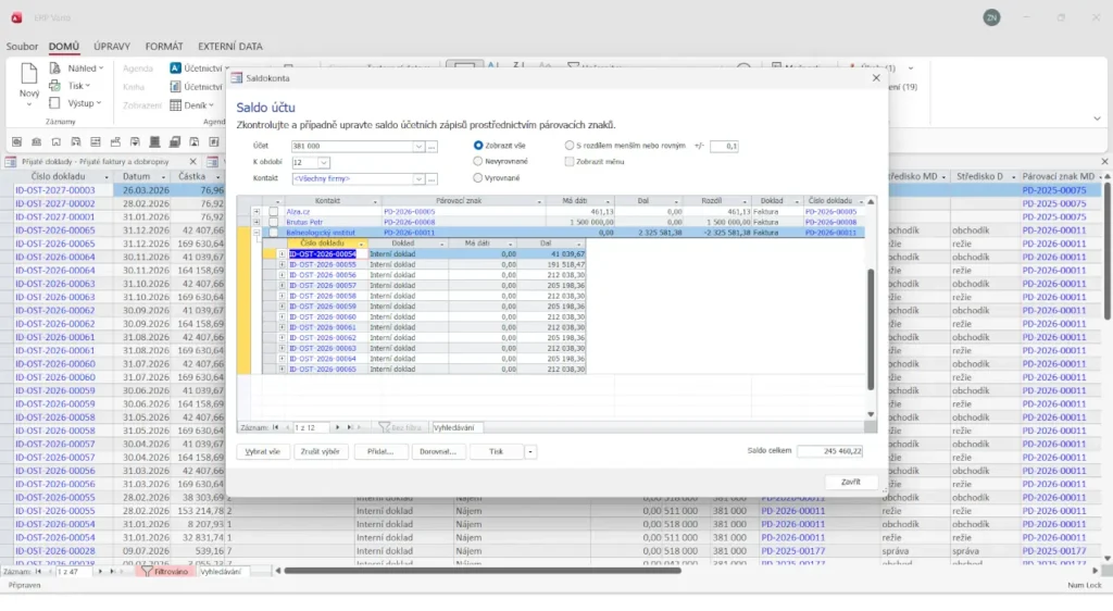 - detailní náhled na účetní vazby