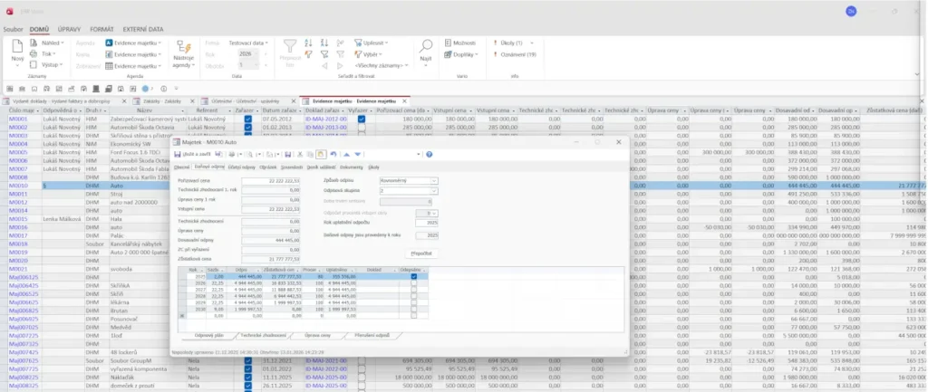 Systém automaticky počítá daňové i účetní odpisy. Umožní vést skutečné hodnoty majetku bez zdlouhavých manuálních úprav.