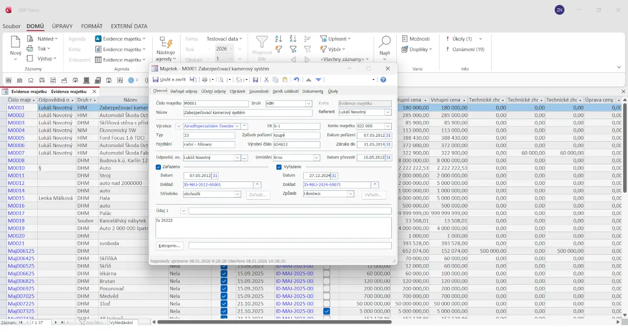 Změny hodnoty majetku se zapisují včetně dopadu na odpisy. Získáte jasný přehled o investicích.