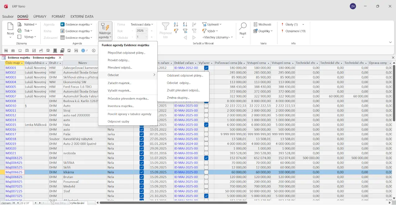 Systém počítá daňové i účetní odpisy automaticky podle zvolených parametrů. Uživateli stačí nastavit způsob odpisování a Vario zajistí všechny výpočty i návaznosti. Díky tomu nevznikají rozdíly mezi účetním a daňovým pohledem. Odpisy jsou vždy přesné a snadno kontrolovatelné.