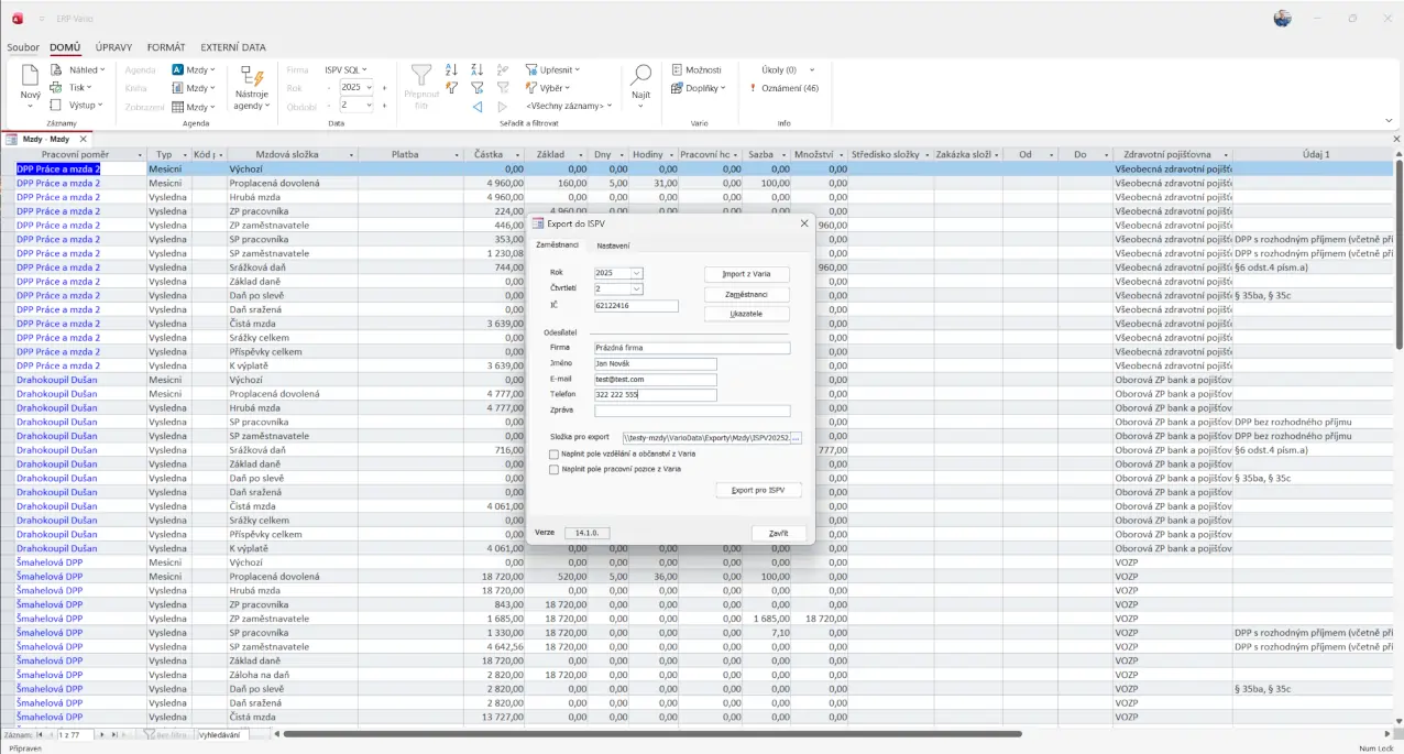 ISPV pracuje s daty, která už ve Variu vznikají při běžném zpracování mezd. Není nutné vytvářet zvláštní evidence ani připravovat podklady mimo systém.