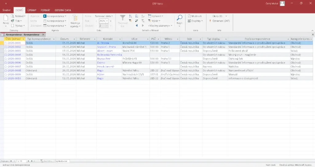 Slouží k evidenci a správě firemní komunikace na jednom místě. Pomáhá udržet přehled o došlé i odeslané korespondenci a jejích souvislostech.