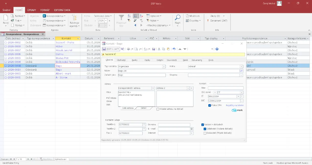 Mějte veškerou firemní komunikaci přehledně evidovanou na jednom místě. Modul Korespondence v ERP systému Vario pomáhá firmám udržet pořádek v došlé i odeslané poště a navázat komunikaci na konkrétní kontakty a další činnosti.