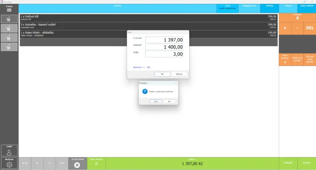 Prodej probíhá přímo v přehledném prodejním rozhraní. Obsluha má vše potřebné na jednom místě.