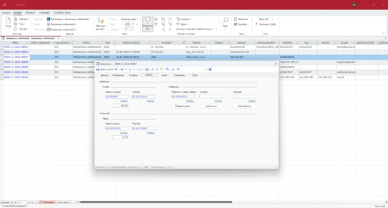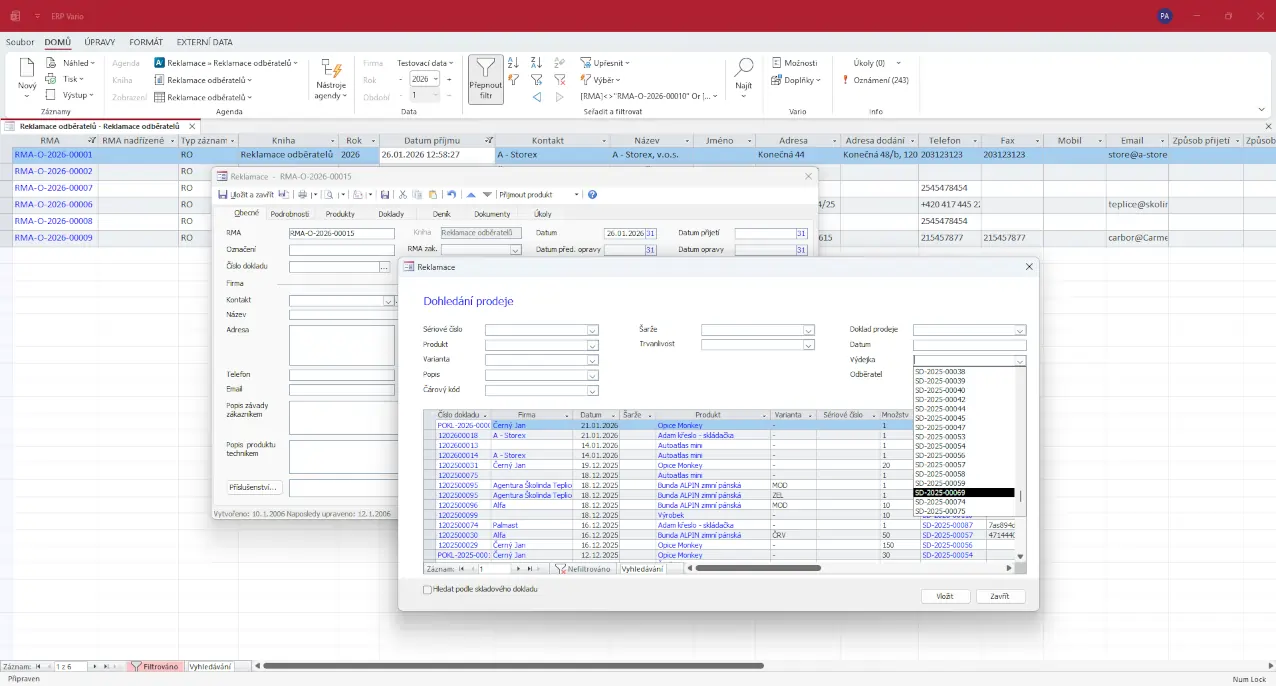 Reklamace v ERP systému Vario vycházejí z existujících dokladů a dat v systému. To zajišťuje jasnou návaznost a eliminuje ruční dohledávání informací.
