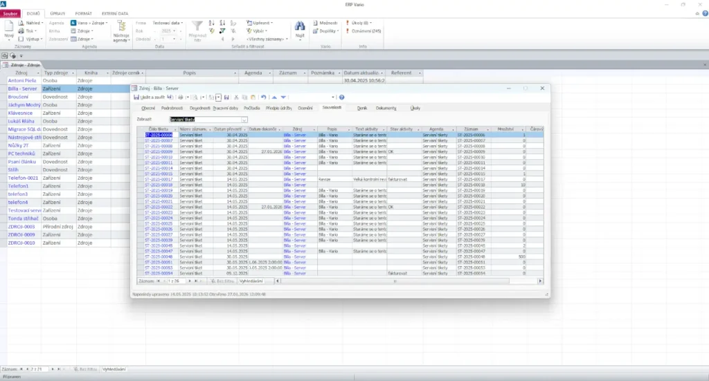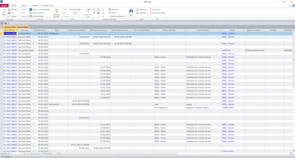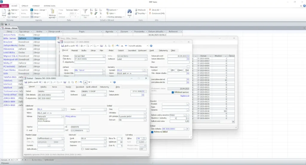 Servis není externí aplikace, ale plnohodnotná část ERP systému Vario. Všechny informace vznikají jednou a sdílí se napříč firmou.