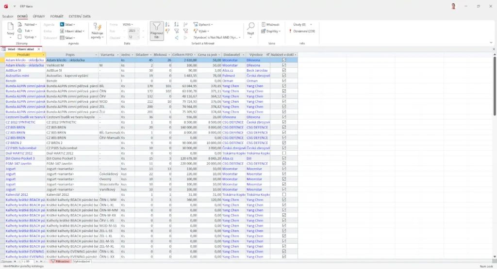 Centrální databáze všech položek, ze které vycházejí skladové procesy.