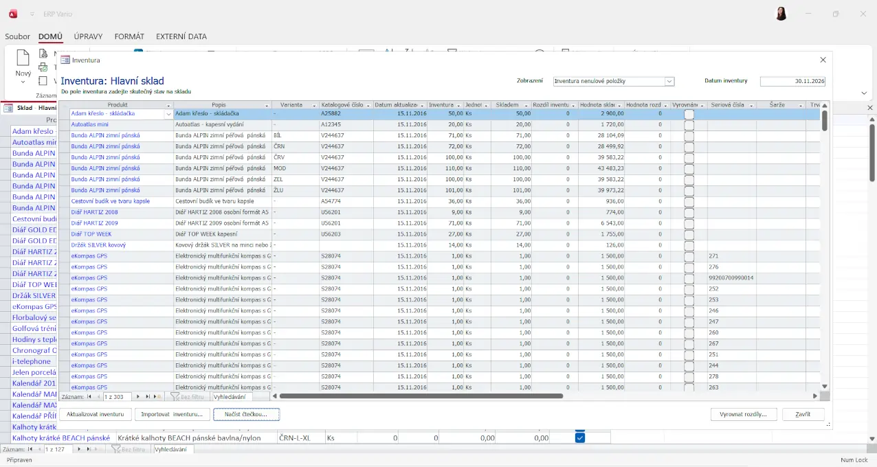 • Inventurní seznamy a porovnání stavu