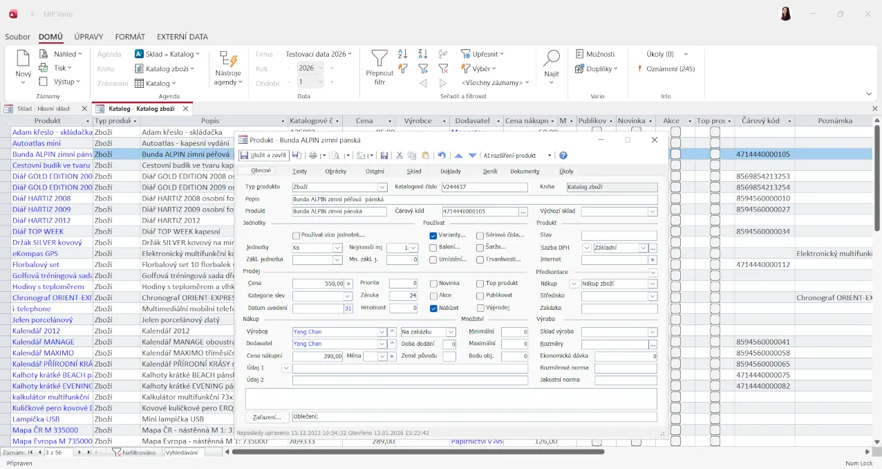 Práce s jednou kartou položky v Katalogu eliminuje nejasnosti a udržuje data konzistentní napříč celým systémem.