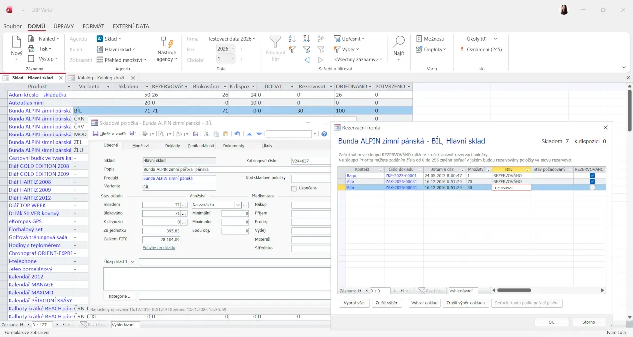 Vario automaticky sleduje stavy, umístění i rezervace. Uživatelé tak mají jistotu dostupnosti materiálu i zboží.