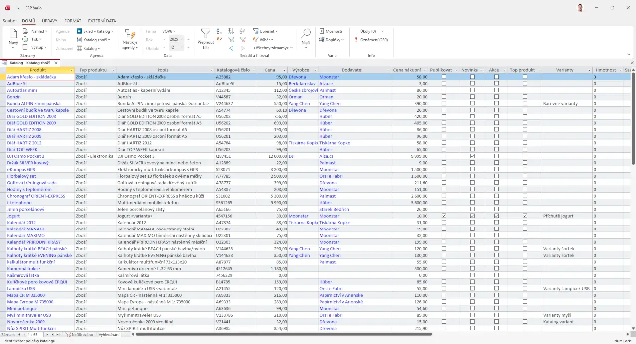 Centrální databáze všech položek, ze které vycházejí skladové procesy.
