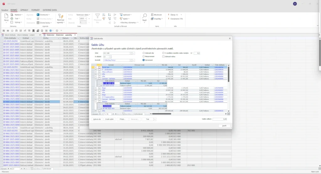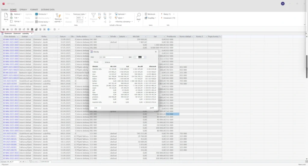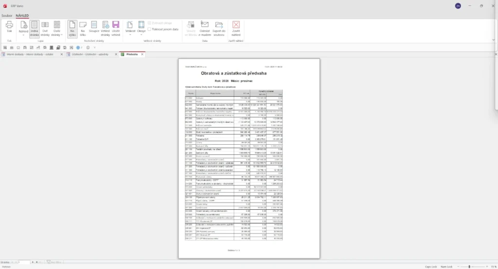 K dispozici jsou standardní účetní sestavy i přehledy, které lze filtrovat podle analytiky, středisek nebo zakázek. Výstupy lze exportovat a předávat auditorům nebo poradcům bez další úpravy.