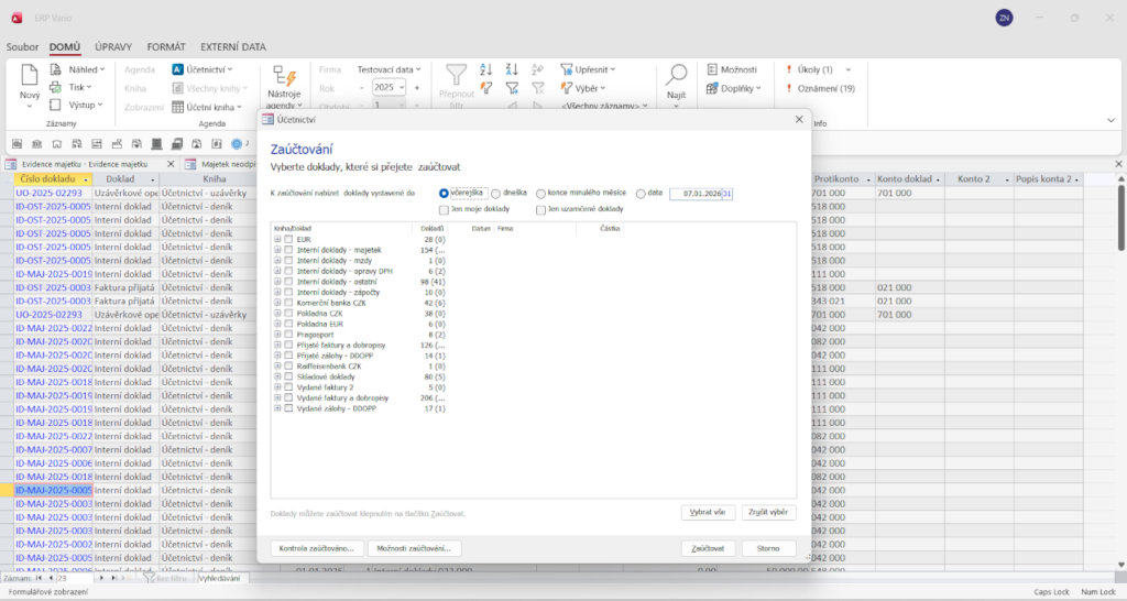 Ano, Vario umožňuje paralelní práci ve více obdobích, což usnadňuje kontrolu i přípravu uzávěrek. Tým tak nemusí čekat na dokončení jedné části účetnictví, aby mohl pokračovat v další.