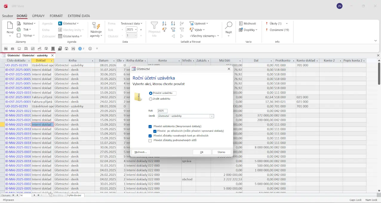 Ano, Vario umožňuje paralelní práci ve více obdobích, což usnadňuje kontrolu i přípravu uzávěrek. Tým tak nemusí čekat na dokončení jedné části účetnictví, aby mohl pokračovat v další.
