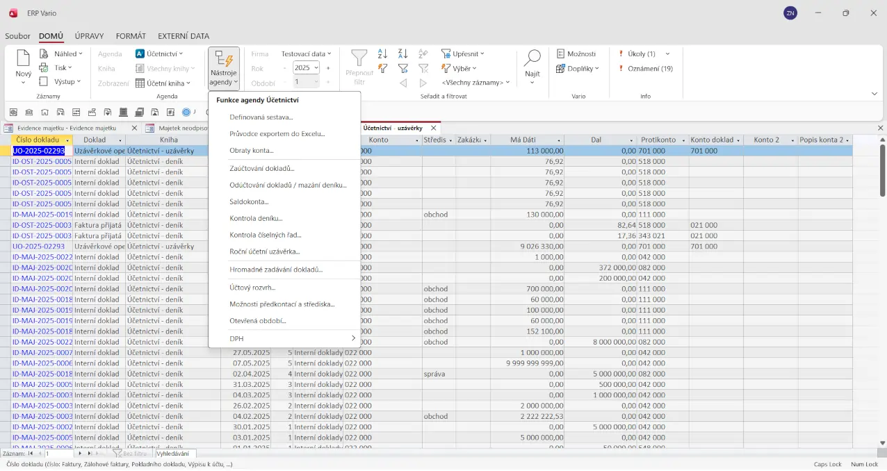 Hlavní agenda pro vedení účetních knih a účtování veškerých firemních operací. Přináší přesná data a dokonalou návaznost na ostatní části Varia.