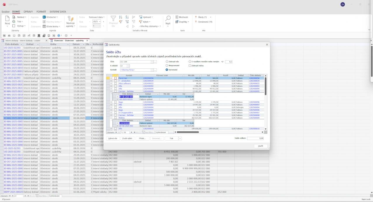 Modul přímo navazuje na doklady, sklad, banku i pokladnu. Účetnictví tak pracuje vždy s aktuálními daty a umožňuje rychlé rozhodování.
