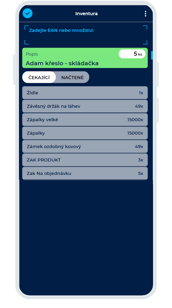 • Zpracování inventury bez přerušení provozu skladu